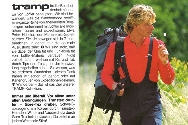 Als Peter Habeler im Mai 1978 gemeinsam mit Reinhold Messner auf dem Gipfel des Mount Everest steht, trägt der Extrem-Alpinist eines der allerersten Produkte aus transtex®.