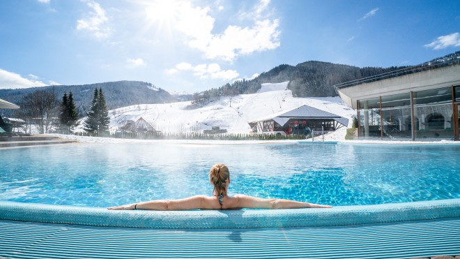 Nach den perfekten Tiefschnee-Schwüngen wartet Erholung pur im heilsamen Thermalwasser. Der Skiort Bad Kleinkirchheim verspricht mit dem Thermal Römerbad und der Familien- & Gesundheitstherme St. Kathrein Thermen-Genuss hoch ZWEI. Loslassen und entspannte Sonnenschein-Momente genießen.