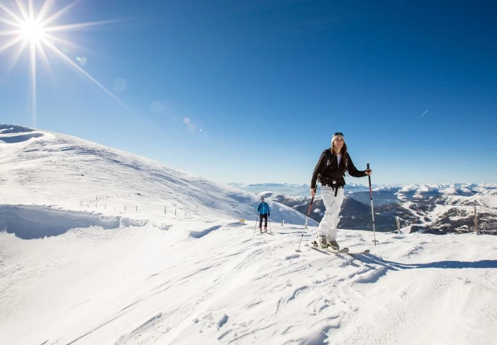 Wer Skitourenluft schnuppern möchte, ist auf den Skitourenparcours am Sportberg Goldeck und im Familienskigebiet Falkert bestens aufgehoben. Der Skitourenparcours “Millet Rise Up Parcour” führt von der Bergstation des Goldecks hinauf bis zum Gipfel des Goldecks auf 2142 Meter Seehöhe. In jeder Kehre stehen Tafeln mit QR-Codes. Wer diese mit dem Handy scannt, erhält hilfreiche Tipps von einem staatlich geprüften Bergführer. Der Skitouren-Lehrpfad am Falkert ist ebenso eine perfekte “Spielwiese” für Skitouren-Neulinge. Das Besondere: Hier können Tourengeher auf einem Lawinensuchpfad erfahren, wie lebensrettende Suchgeräte funktionieren. Der Skitouren-Lehrpfad am Falkert ist der einzige seiner Art in Kärnten.