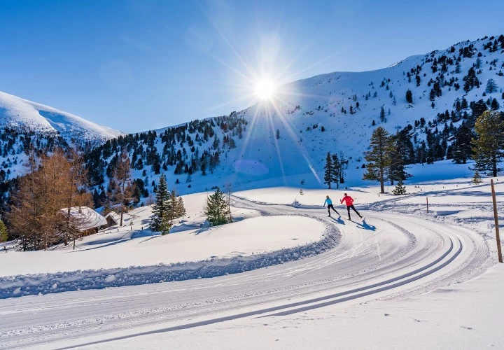 Zu den schönsten Loipen im UNESCO Biosphärenpark Nockberge zählt die Panoramaloipe im Skigebiet Hochrindl. Sie führt durch winterliche Zirbenwälder bis zum Weißen Kreuz auf 1750 Meter Seehöhe. Entlang der Loipe wird man mit einem atemberaubenden Rundumblick bis zu den Karawanken belohnt. Auf der Turracher Höhe stehen vier Langlaufloipen zur Wahl – herrliche Blicke auf die umliegende Bergwelt inklusive. Das Skigebiet punktet mit Schneesicherheit, vielen Sonnenstunden und einem besonderen Rundum-Service mit dem Pistenbutler.