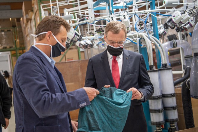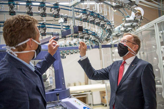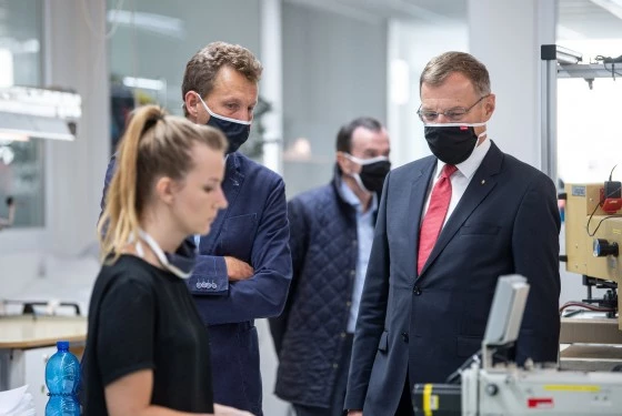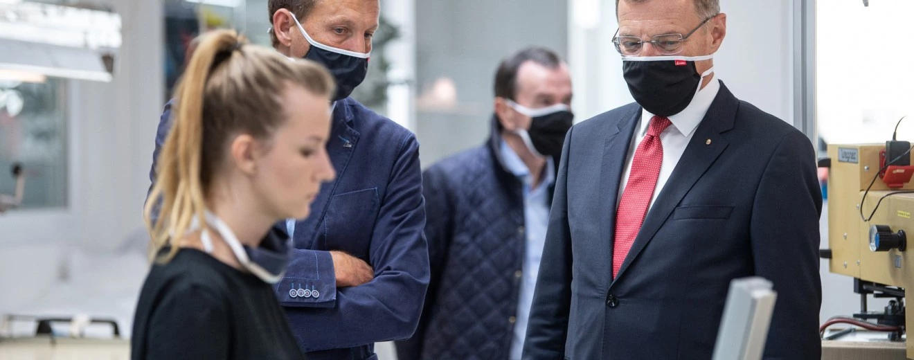 Im Zuge der Aktion “Oberösterreich wieder stark machen” besuchte Landeshauptmann Mag. Thomas Stelzer den Firmenstandort Ried im Innkreis. Dabei dankte der Landeshauptmann den engagierten MitarbeiterInnen für die Produktion von insgesamt 100.000 Gesichtsmasken und zeigte sich beeindruckt von der verantwortungsvollen Produktion.
