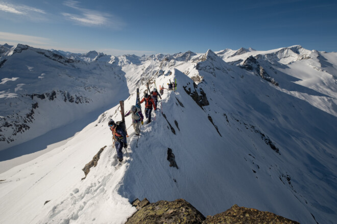 Per Zug, Bike und Ski geht es gemeinsam von Lienz zum zweithöchsten Gipfel der Schobergruppe – der Rote Knopf.