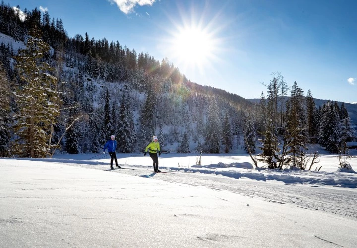 Vier Langlaufgebiete, eine traumhafte Landschaft, Schneesicherheit und fantastische Thermen und Bäder warten nur darauf in Anspruch genommen zu werden. Mit einer Gesamtlänge von 258 km und 19 Loipen herrschen auf einer Seehöhe zwischen 659 und 1.650 m optimale Langlaufbedingungen. Der perfekte Langlaufgenuss wartet in Bad Mitterndorf. Direkt neben der Grimming Therme steigt man in ein 145 km langes Loipennetz, um danach die Muskeln in der Sauna oder bei einer Massage wieder aufzulockern.