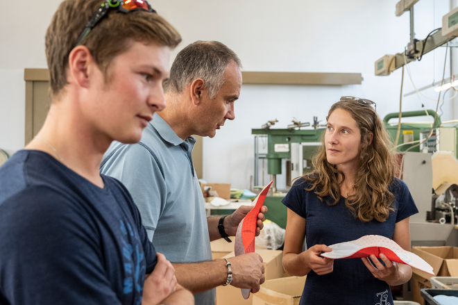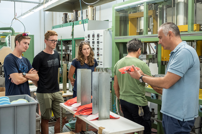 Schon vor Jahrzenten hat LÖFFLER sich entschieden, die Fertigung nicht in andere Kontinente auszulagern, sondern regional in Österreich/Europa zu produzieren. Die Marke setzt auch bei der neuen Mountainbike-Shorts LINDA & LANDO auf Regionalität und produziert so lokal wie möglich: Den Webstoff bezieht LÖFFLER aus Frankreich, die Radsitzpolster stammen aus Italien, genäht wird die Shorts bei einem langjährigen LÖFFLER-Partnerbetrieb in Bulgarien. Die Mountainbike-Kollektion für diesen Frühling/Sommer ist einmal mehr ein Produkt aus europäischer Herstellung. 100 % aller Shirts und mehr als 80 % der Radhosen Stoffe werden in der eigenen Strickerei am Firmensitz in Ried im Innkreis gestrickt. Neben der Strickerei deckt der Textilhersteller am Hauptsitz in Österreich die meisten Produktionsschritte selbst ab – von Produktentwicklung und Design, Strickerei über Zuschnitt und Näharbeiten bis hin zu Qualitätssicherung, Lager und Versand. Lediglich bei den Näharbeiten werden Kapazitäten von langjährigen Partnern zugekauft: Vom Tochterunternehmen in Bulgarien und Lohnpartnerbetrieben, die allesamt in Europa produzieren. Aus Leidenschaft und Überzeugung – Weil wichtig ist, wo etwas herkommt und wie es gemacht wird.