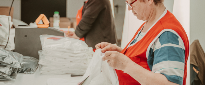 Bei der Qualitätskontrolle – Jedes fertig genähte Kleidungsstück wird sorgfältig überprüft, bevor es nach Ried geschickt wird.