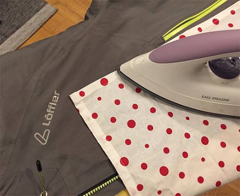 Die wasserabweisende Imprägnierung eines Oberstoffes kann grundsätzlich durch Wärme reaktiviert werden. Das geschieht entweder durch einen Trockenprozeß im Wäschetrockner (nach dem Trocknungsprozess für weitere 20 Minuten bei niedriger Temperatur) oder durch Bügeln bei entsprechender Temperatur. Wenn gebügelt wird, sollte unbedingt ein Tuch zwischen Bekleidungsstück und Bügeleisen gelegt werden. Dabei gilt es grundsätzlich die Pflegesymbole im Einnähetikett zu beachten. Aber auch wenn die Pflegesymbole Wäschetrockner und Bügeln gestrichen sind, kann eine kurze und schonende Behandlung im Wäschetrockner und ein Bügeln bei niedriger Temperatur keinen Schaden anrichten. Gerade im Schulterbereich und oberen Rücken ist die Aktivierung durch Bügeln sinnvoll.