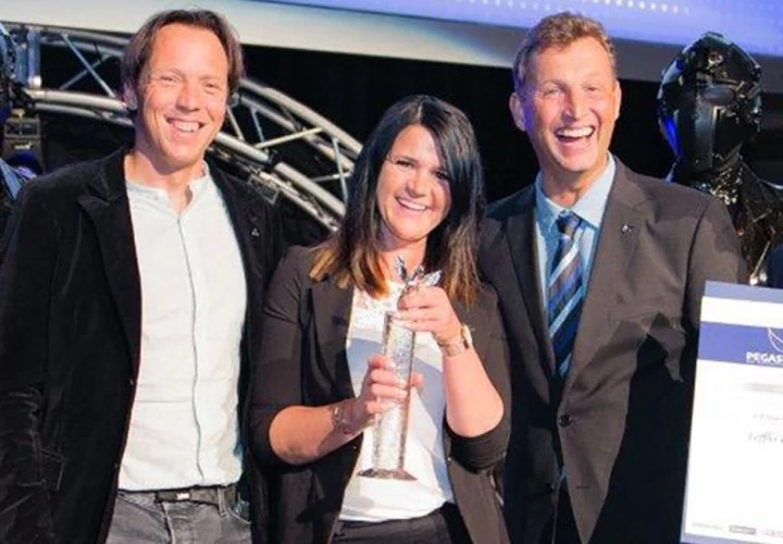 Löffler freut sich über den silbernen Pegasus in der Kategorie "Erfolgsgeschichten"!
