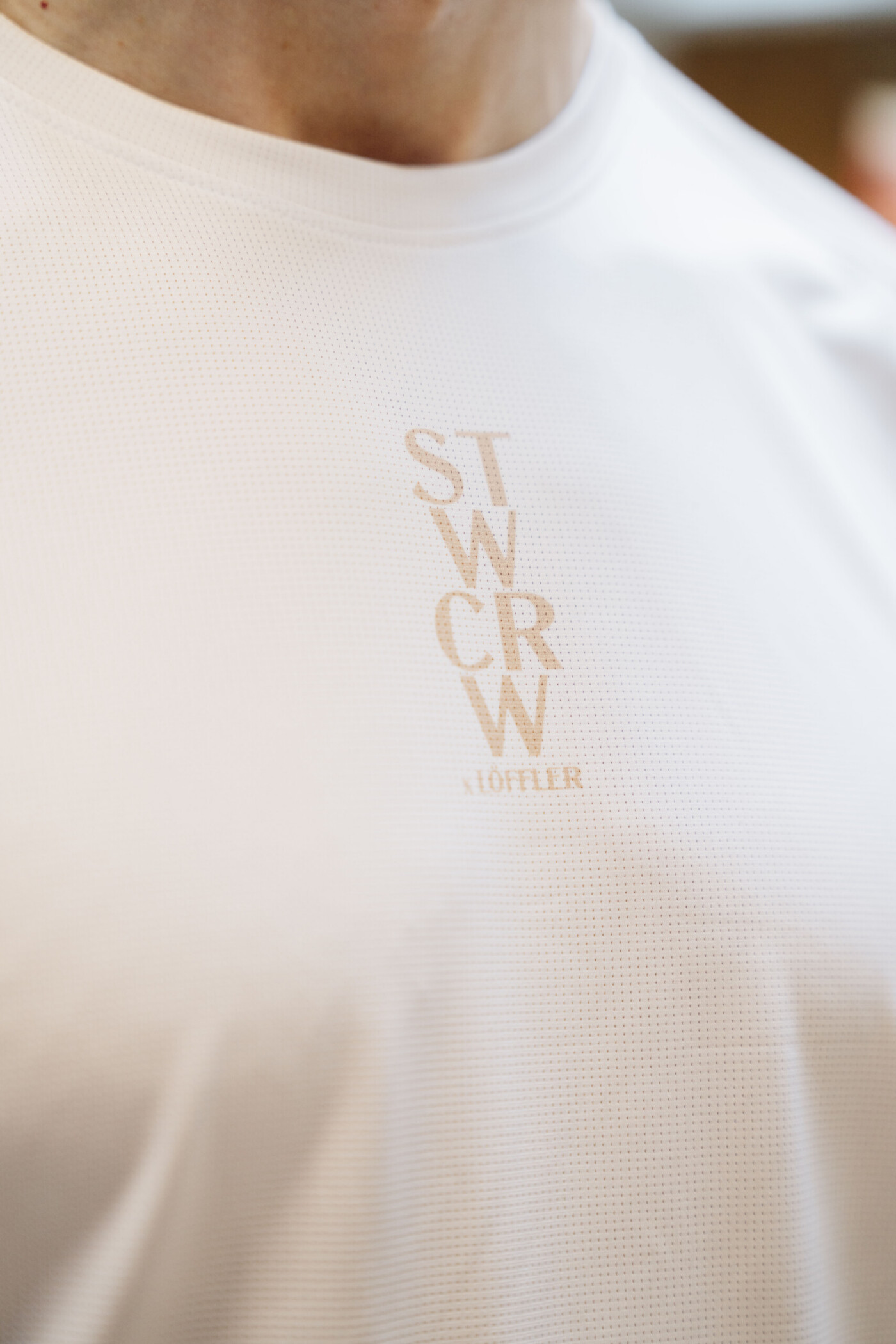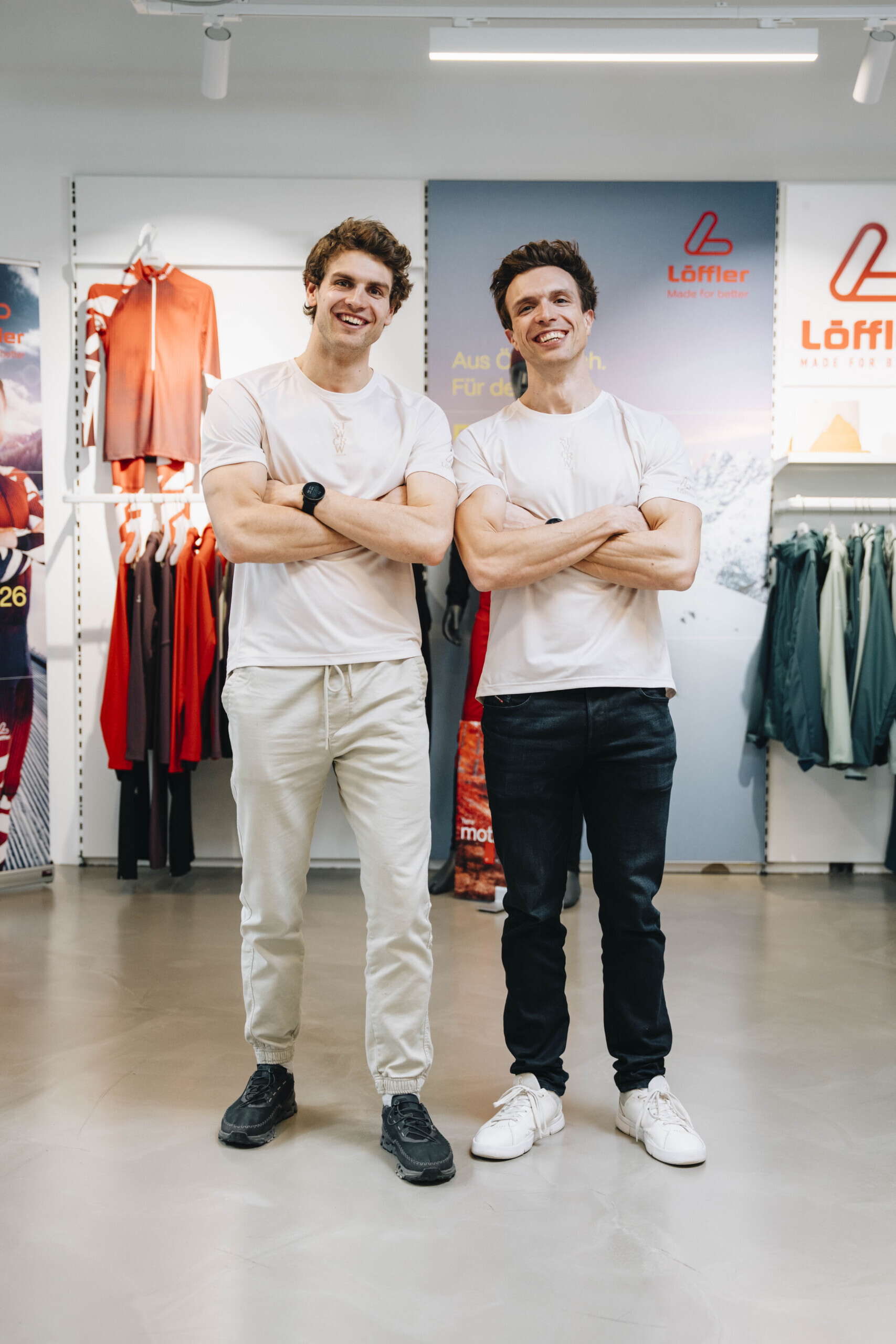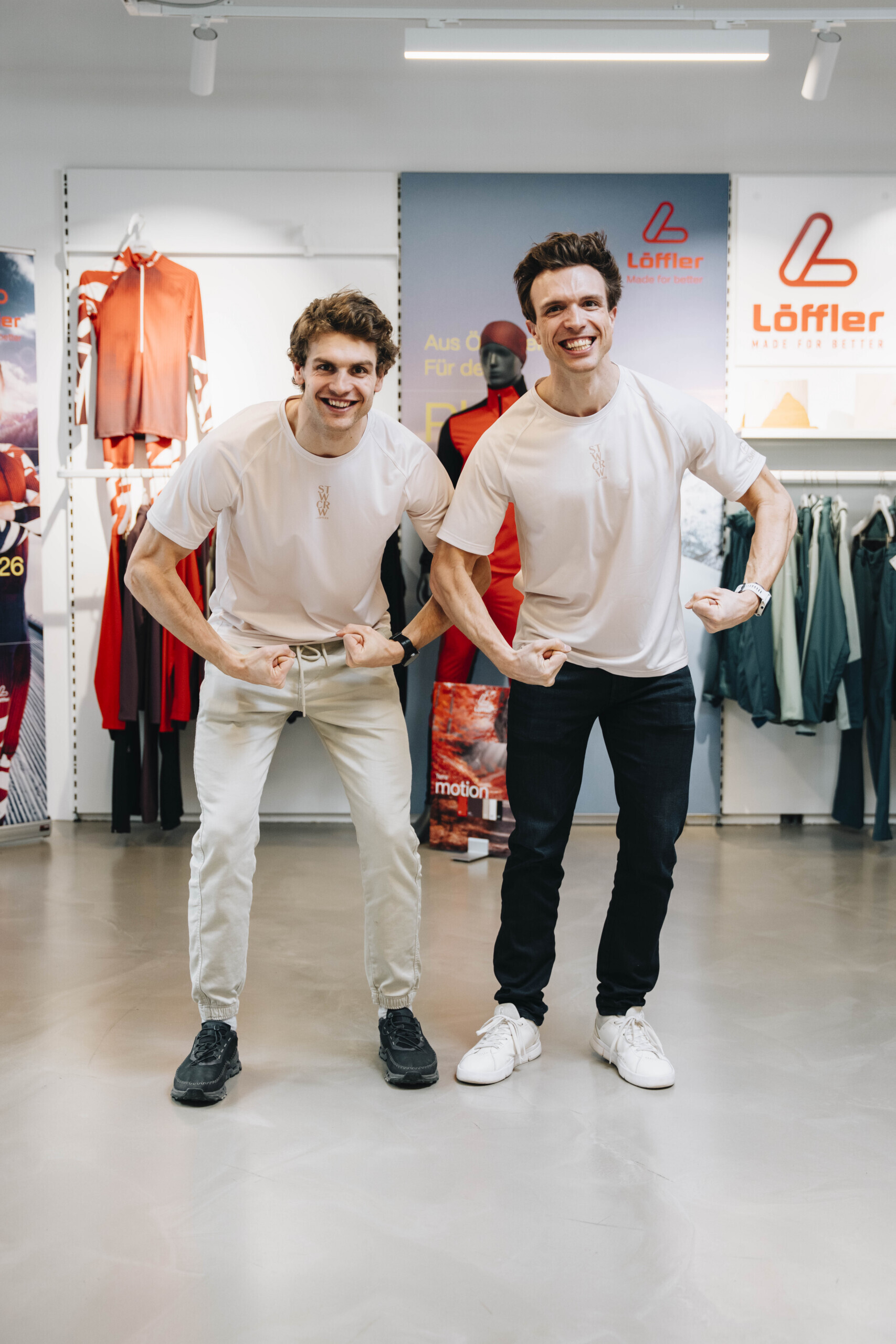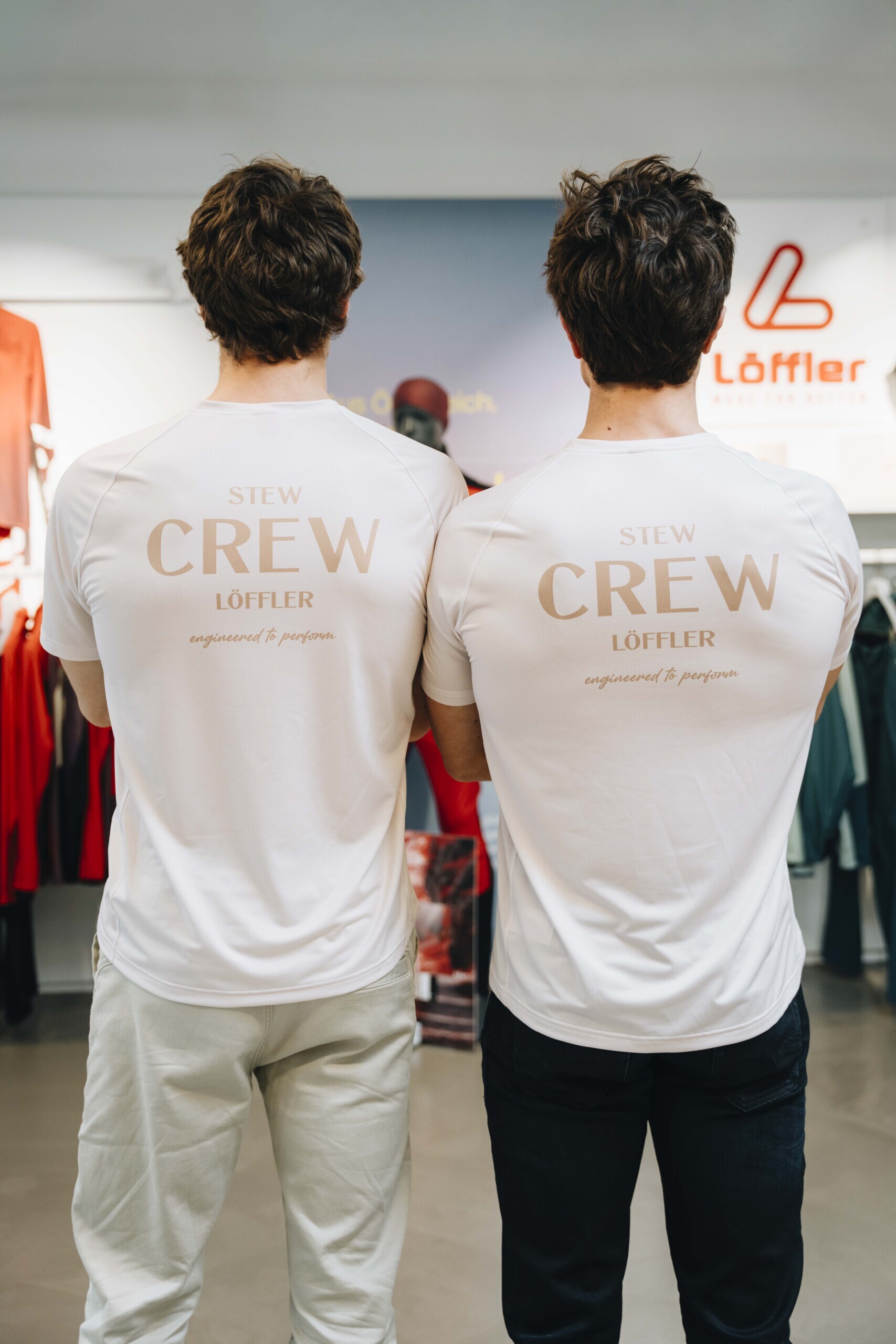 Otto Leodolter, CEO von Löffler, hat gesagt: 7.000 Likes — dann dürft ihr ein Shirt designen. Die Community hat gezündet: Nicht mit 7.000. Nicht mit 10.000. Mit 45.500. Zuckerpatrone rein und ab. Was als Challenge gestartet ist, ist jetzt hier: das erste Stew Crew x Löffler Fitness-Shirt. Designed von Jan und Matti. Gebaut in Österreich. Limitiert auf 50 Stück. Dann ist Schluss.