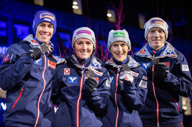 Unsere nordischen Teams glänzen in hochfunktionellen Rennanzügen, Aufwärmbekleidung und transtex® Funktionsunterwäsche.