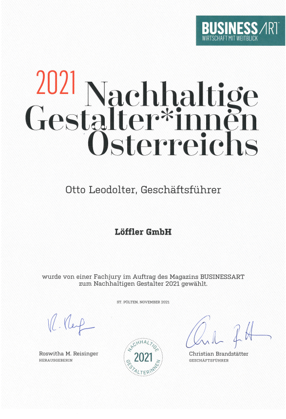 BUSINESSART magazine honors Austria’s Sustainable Designers for the 13th time. In 2021, Otto Leodolter and LÖFFLER GmbH will be honored as Sustainable Designers.