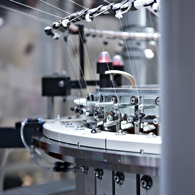 The newly developed transtex® hybrid knitting technology now also allows Löffler to design the material structure of selected products differently depending on the body zone.