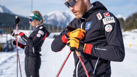The development of the innovative 3-layer soft shell transtex®SHELL took about 3.5 years and was carried out in cooperation with the Austrian company Voack. On the part of LÖFFLER, mainly the departments: Product Management, Product Development and Quality Assurance were involved. In addition, an internal LÖFFLER and an external test team of athletes were involved in the development, whose feedback contributed to optimizing the quality and functionality of the material and its textile processing. Among others were the 2020 Biathlon World Champion, Lisa Hauser and the most accurate biathlete of 2020: Simon Eder.