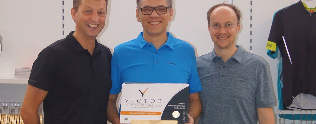 At the VICTOR 2019 – Austria’s Sport Business Award – Löffler achieved the sensational 2nd place in the category “Sport Innovation of the Year” with its unique hotBOND® reflective technology! Authorized signatory Mag. Huber-Reiter proudly accepted the trophy on November 26th at the Haus des Sports Vienna.