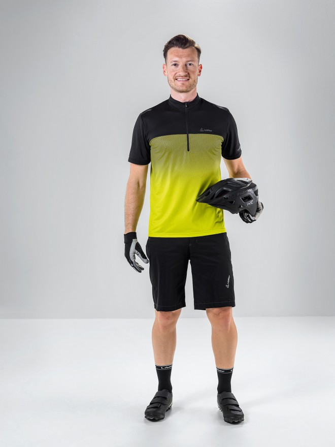 Le maglie da ciclismo slim-fit sono tagliate corte e aderenti alla pelle. Questo significa che più sono snelle, meglio è. Se corri molte salite con tempo caldo, ci sono maglie speciali fatte di un tessuto più leggero e molto traspirante – per esempio il Bike Jersey FZ Aero. Inoltre, le strutture integrate (Airstream) nella zona delle maniche e delle spalle assicurano che il flusso d’aria venga interrotto. Questo riduce al minimo la resistenza dell’aria in una posizione di gara aggressiva. LÖFFLER ha creato maglie che calzano come una seconda pelle sul corpo e sono state sviluppate con l’aiuto dei professionisti del Team Felbermayr Simplon Wels.
