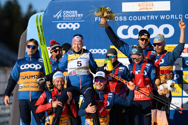 Le squadre Nordic indossano tute da gara ad alta tecnologia, abbigliamento termico e intimo funzionale transtex®.
